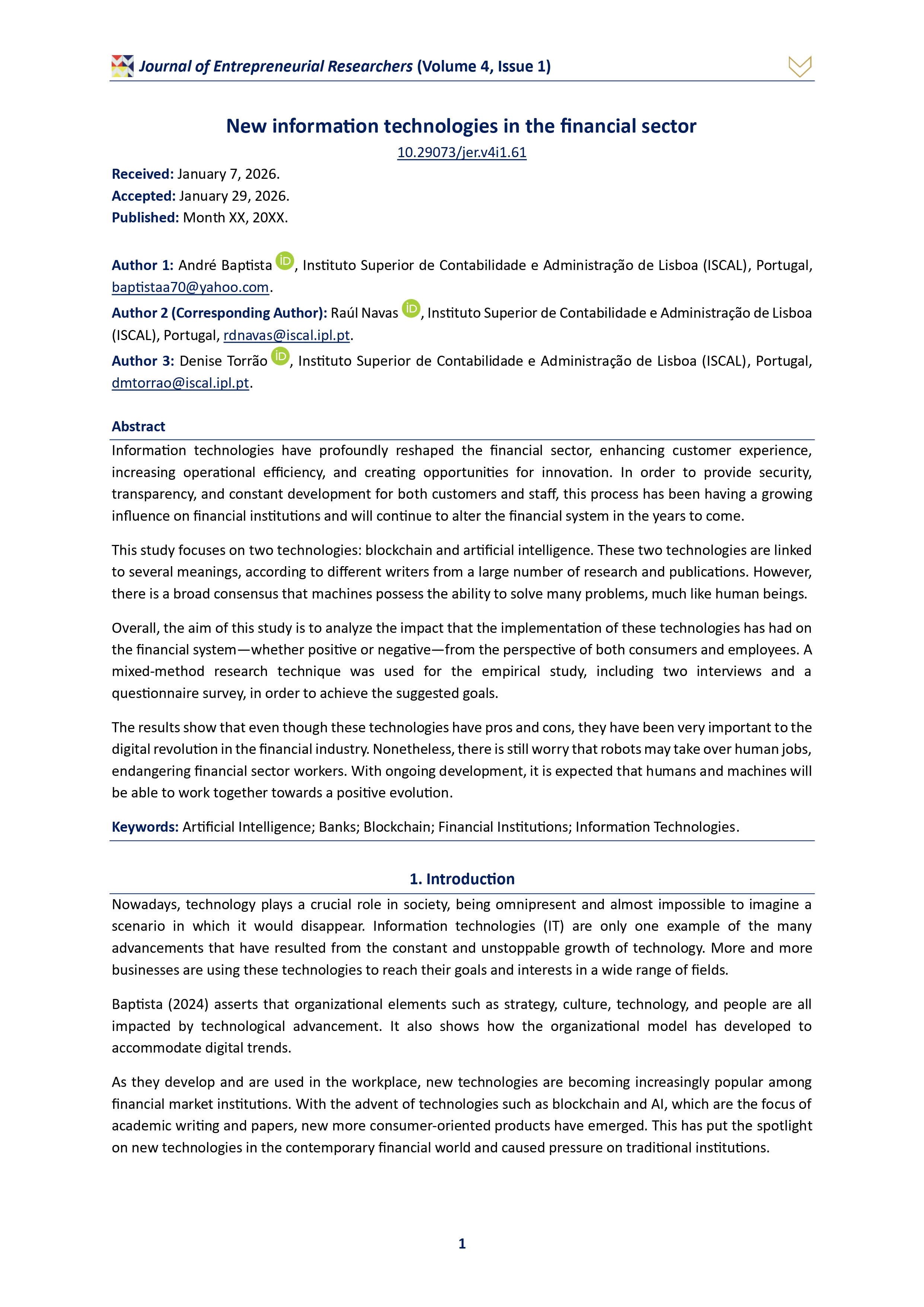 The Journal of Entrepreneurial Researchers (JER) is a peer-reviewed, open-access journal published biannually, dedicated to advancing the study and practice of entrepreneurship across diverse contexts and disciplines.